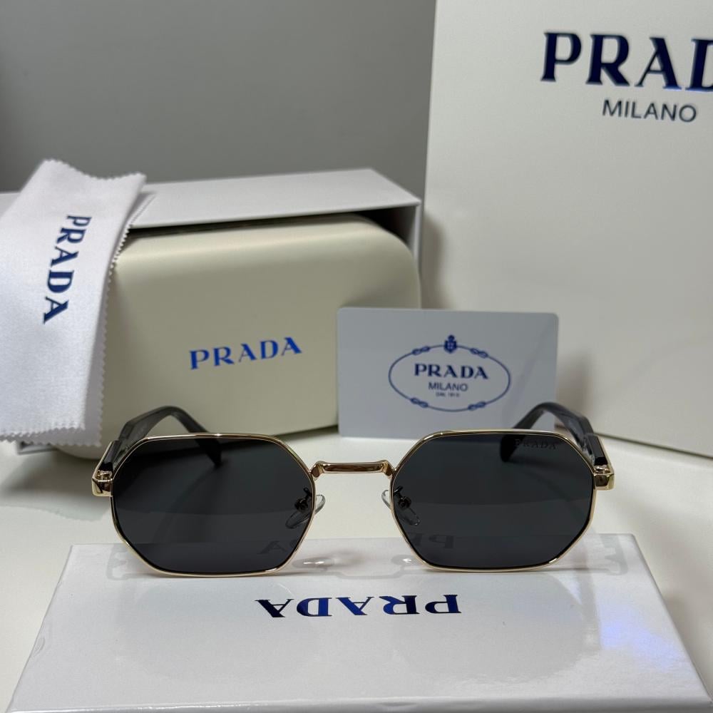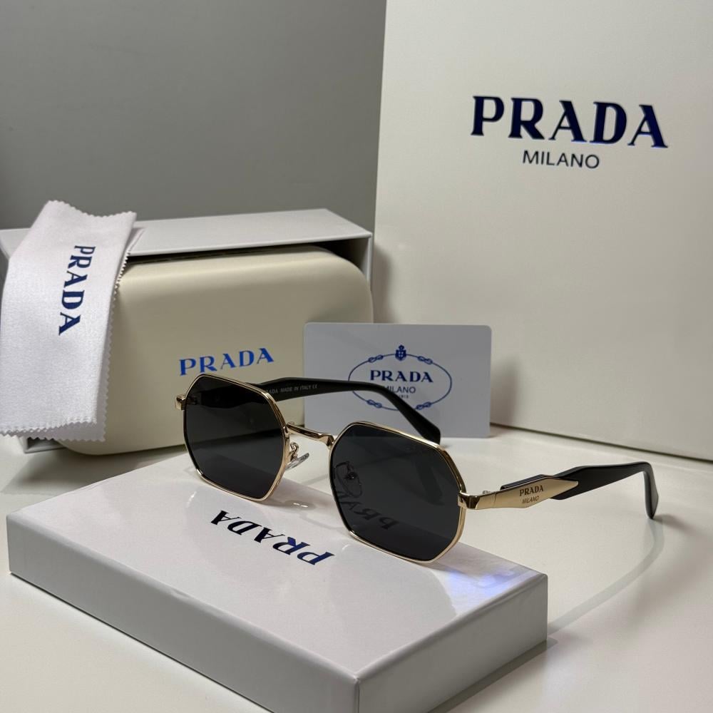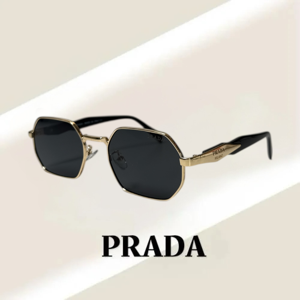 تصميم فاخر يجمع بين الأناقة العصرية واللمسة الكلاسيكية من برادا. الإطار معدني بلون ذهبي لامع مع أطراف سوداء أنيقة تضيف لمسة فخامة لكل إطلالة. العدسات الداكنة توفر حماية عالية من الأشعة فوق البنفسجية، مما يجعلها مثالية للاستخدام اليومي أو أثناء السفر.