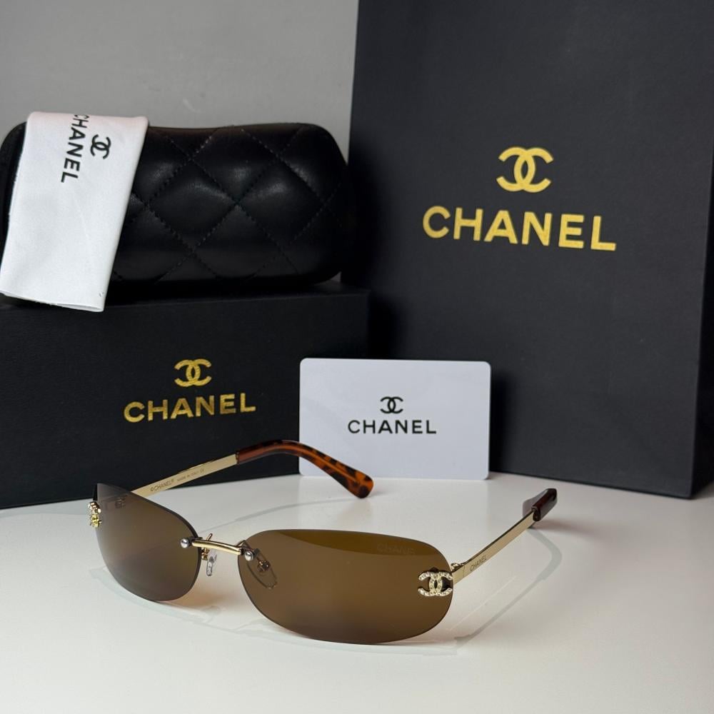 نظارة شانيل بدون إطار باللون الذهبي وعدسة بني