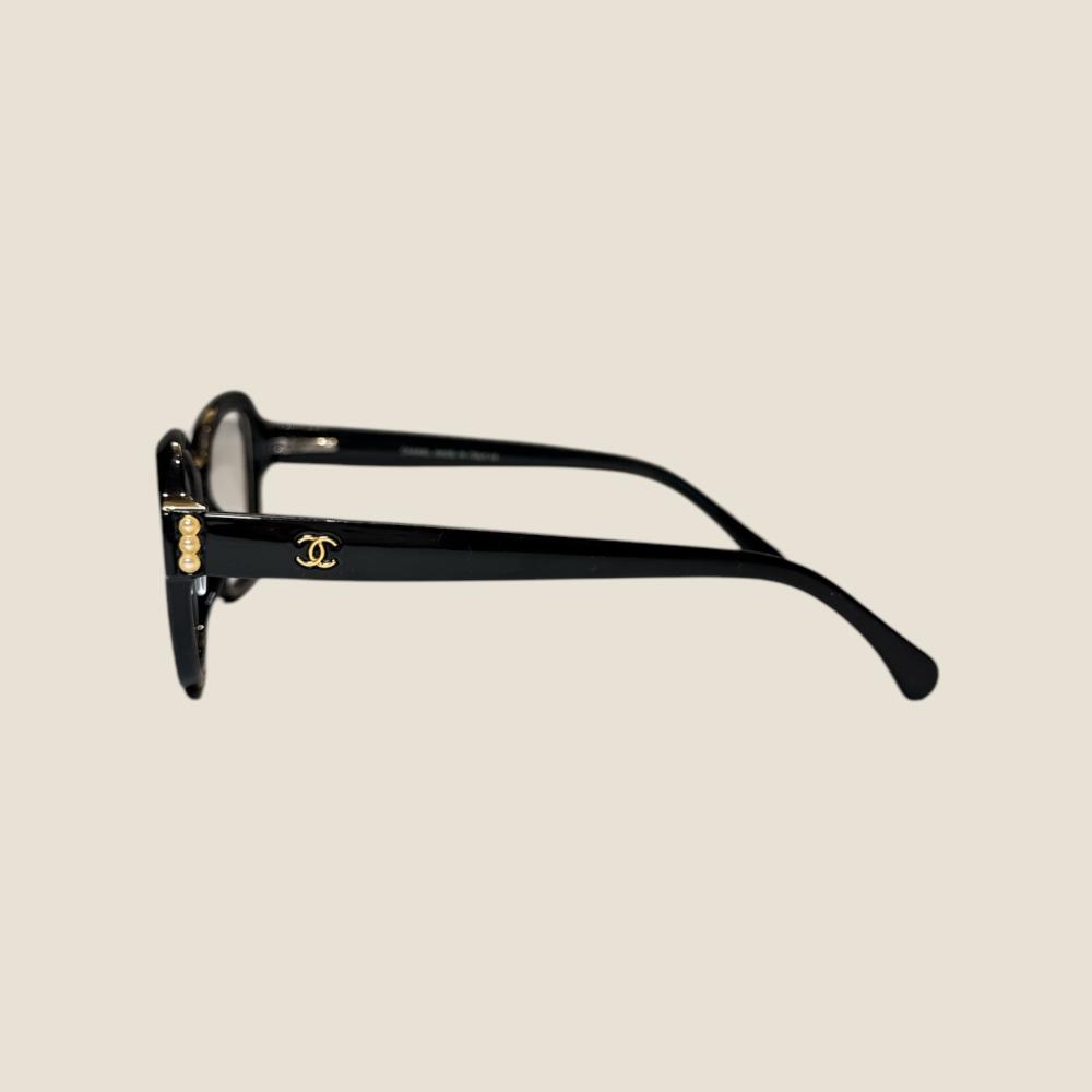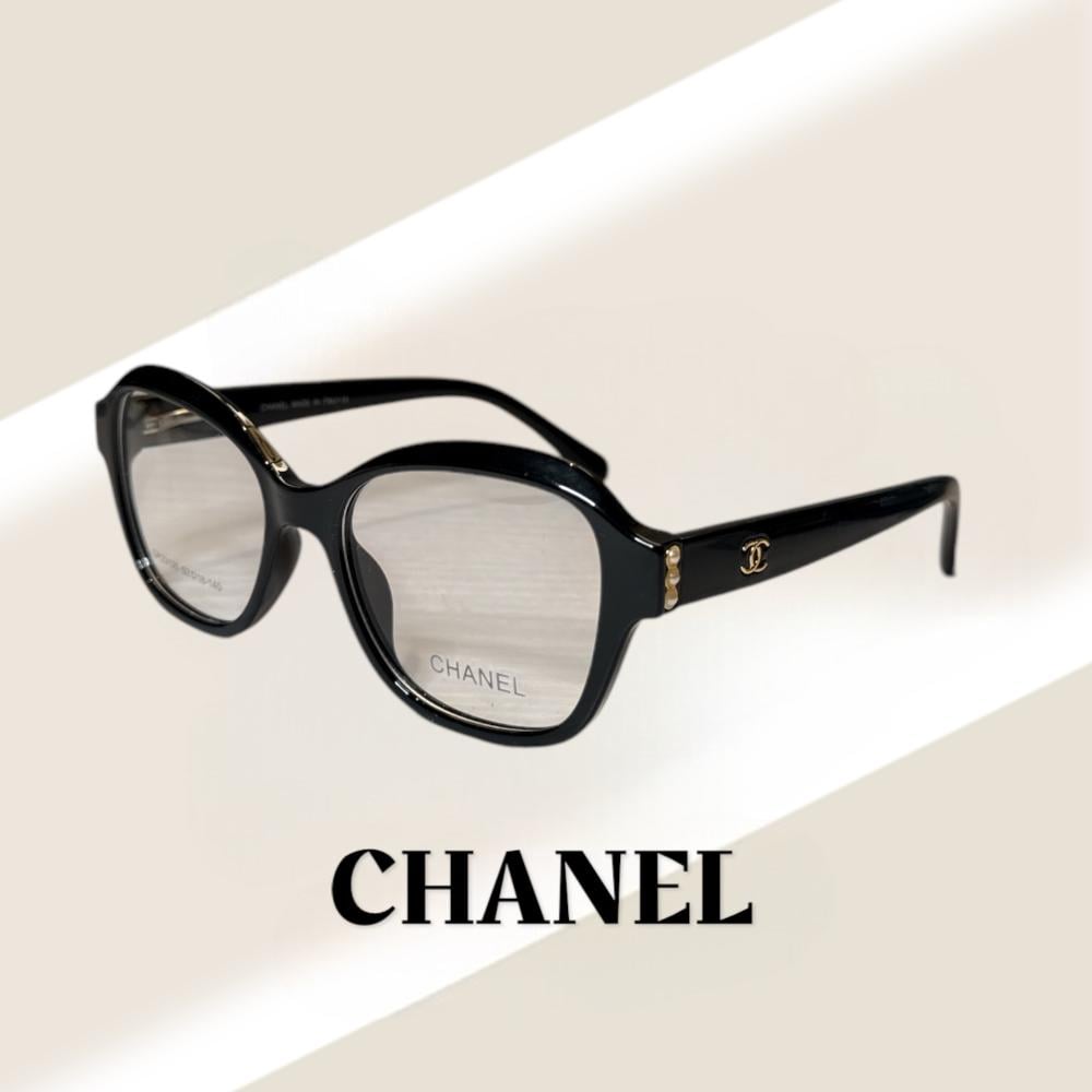 - نظارة شانيل شمسية تصميم عصري وأنيق باللون الأسود مع عدسات شفافة توفر وضوحًا عاليًا.