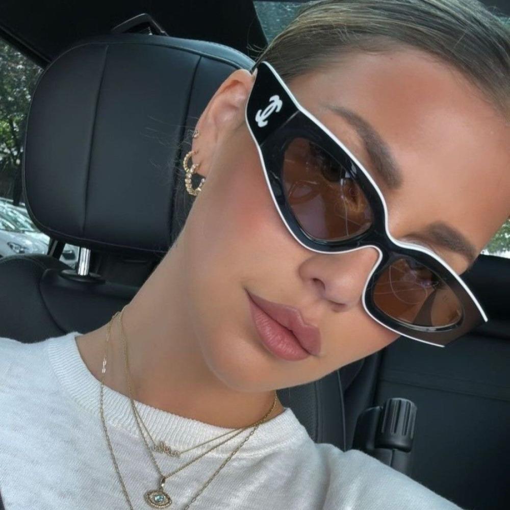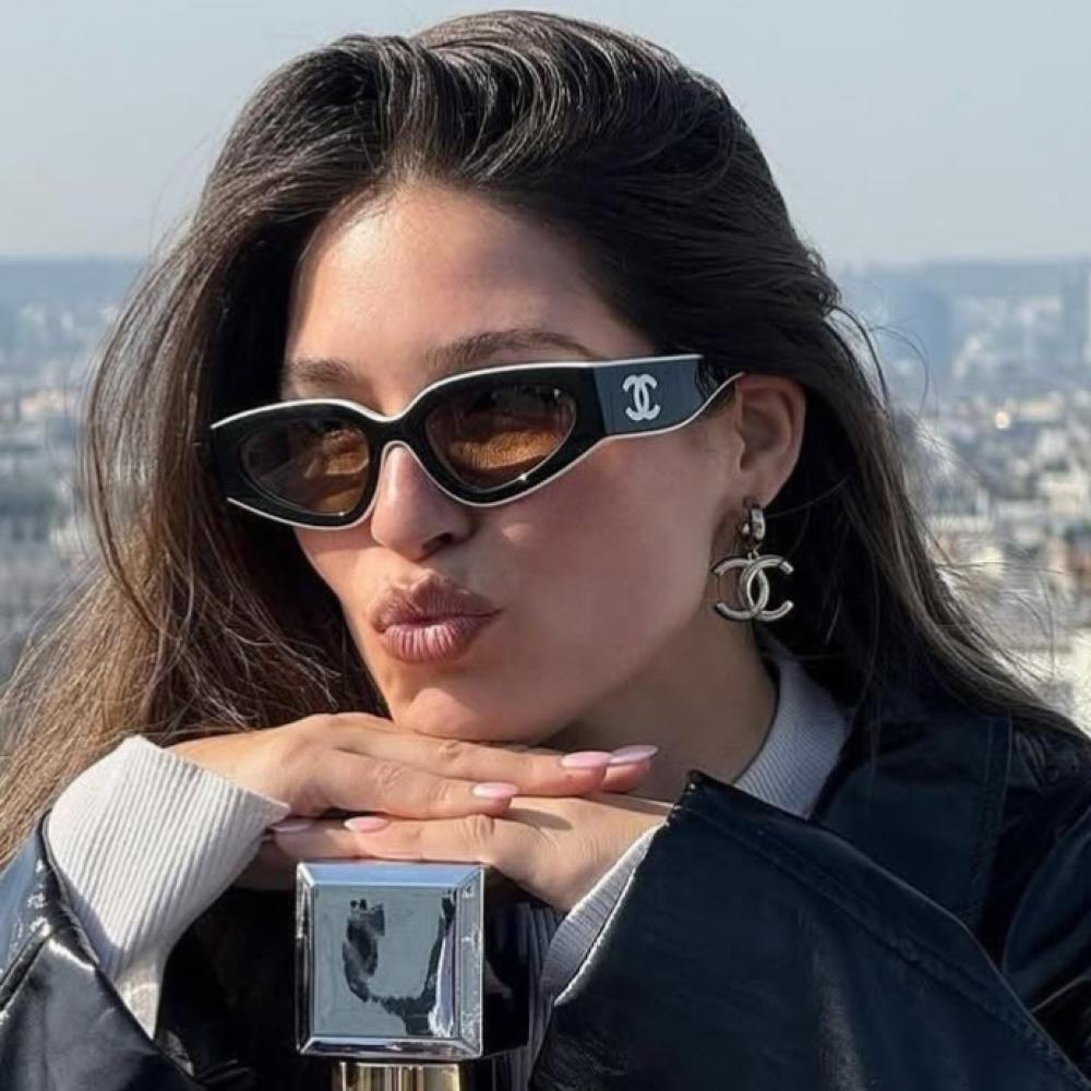 نظارة شمسية مميزة من Chanel بتصميم عين القطة (Cat-Eye) العصري الممزوج بلمسات أيقونية كلاسيكية.
