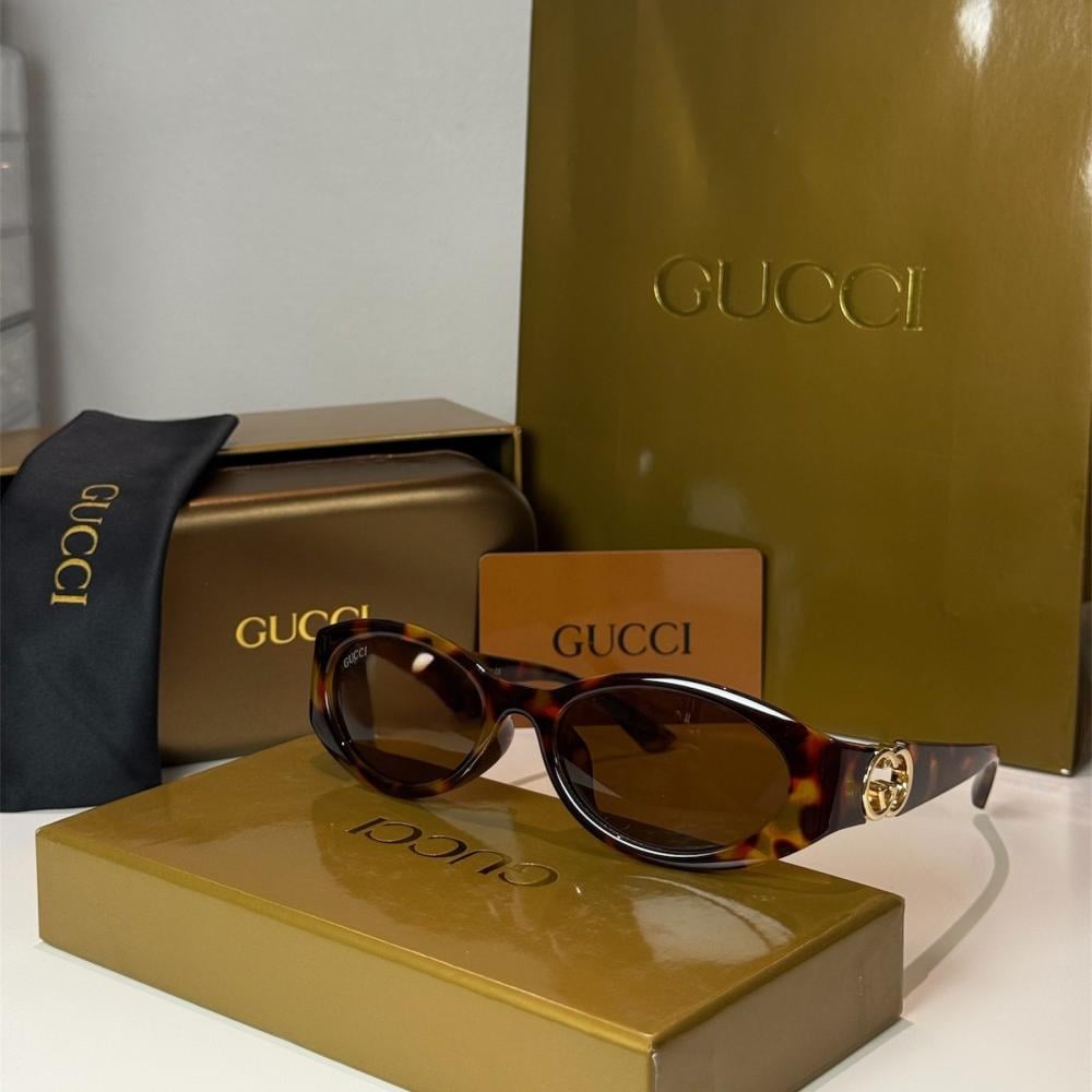نظارة شمسية مميزة من Gucci بتصميم بيضاوي صغير Oval Frame مستوحى من صيحات التسعينات الأنيقة.