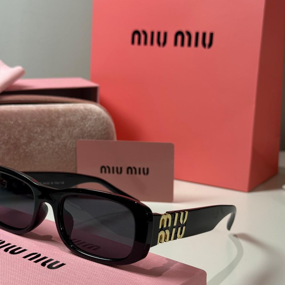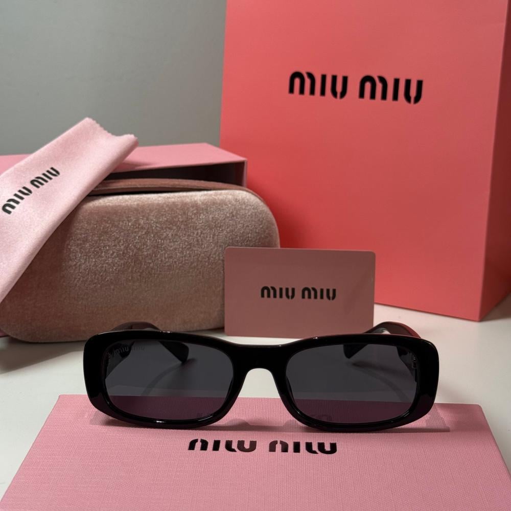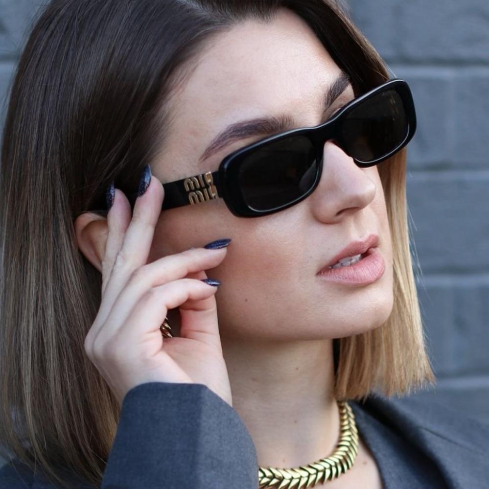 نظارة شمسية فاخرة من Miu Miu بتصميم مستطيل عصري يدمج الأناقة مع اللمسة الجريئة.